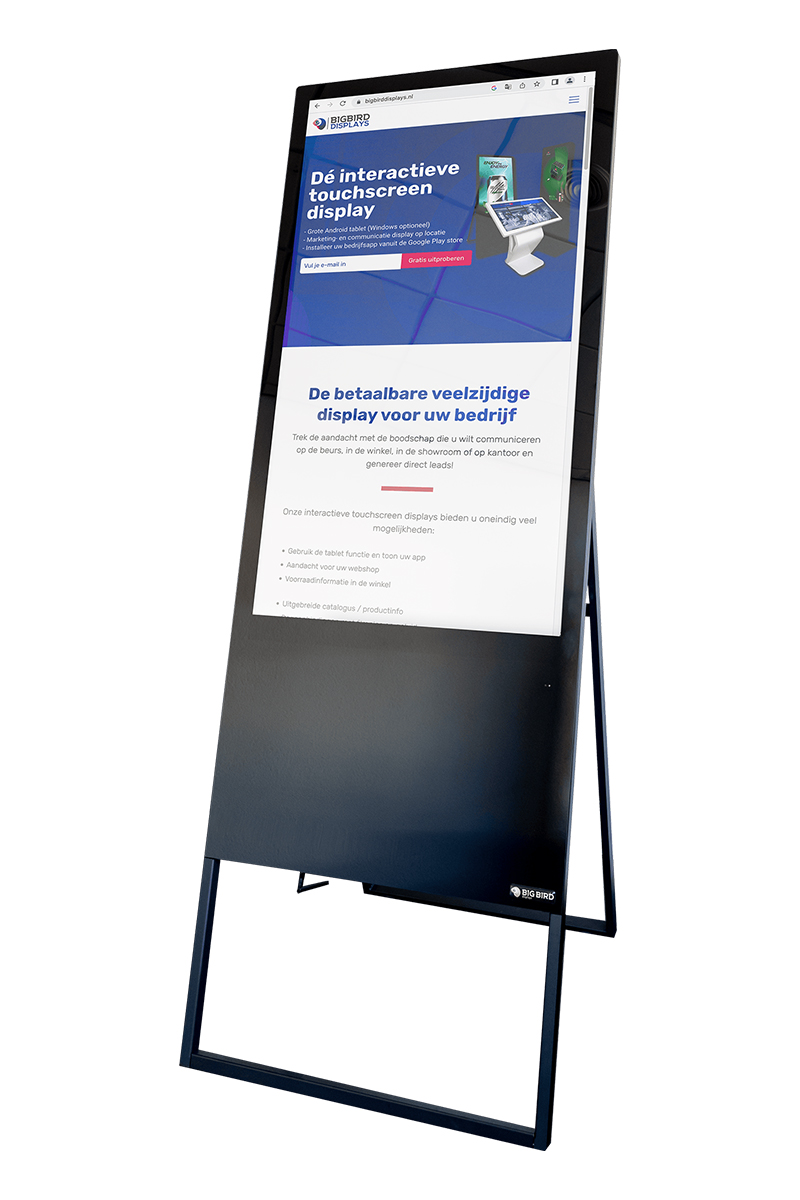 BigBird Mobiele Displays biedt een unieke oplossing voor bedrijven die op zoek zijn naar mobiele presentatie-mogelijkheden. Onze mobiele displays zijn eenvoudig te verplaatsen en op te zetten, waardoor ze ideaal zijn voor beurzen, evenementen en andere buitenlocaties. Ook is deze prima te bevestigen tegen de wand. Bovendien zijn onze mobiele displays gemaakt van hoogwaardige materialen, waardoor ze duurzaam en langdurig te gebruiken zijn. Met onze BigBird Mobiele Displays kunt u opvallen op elk event.